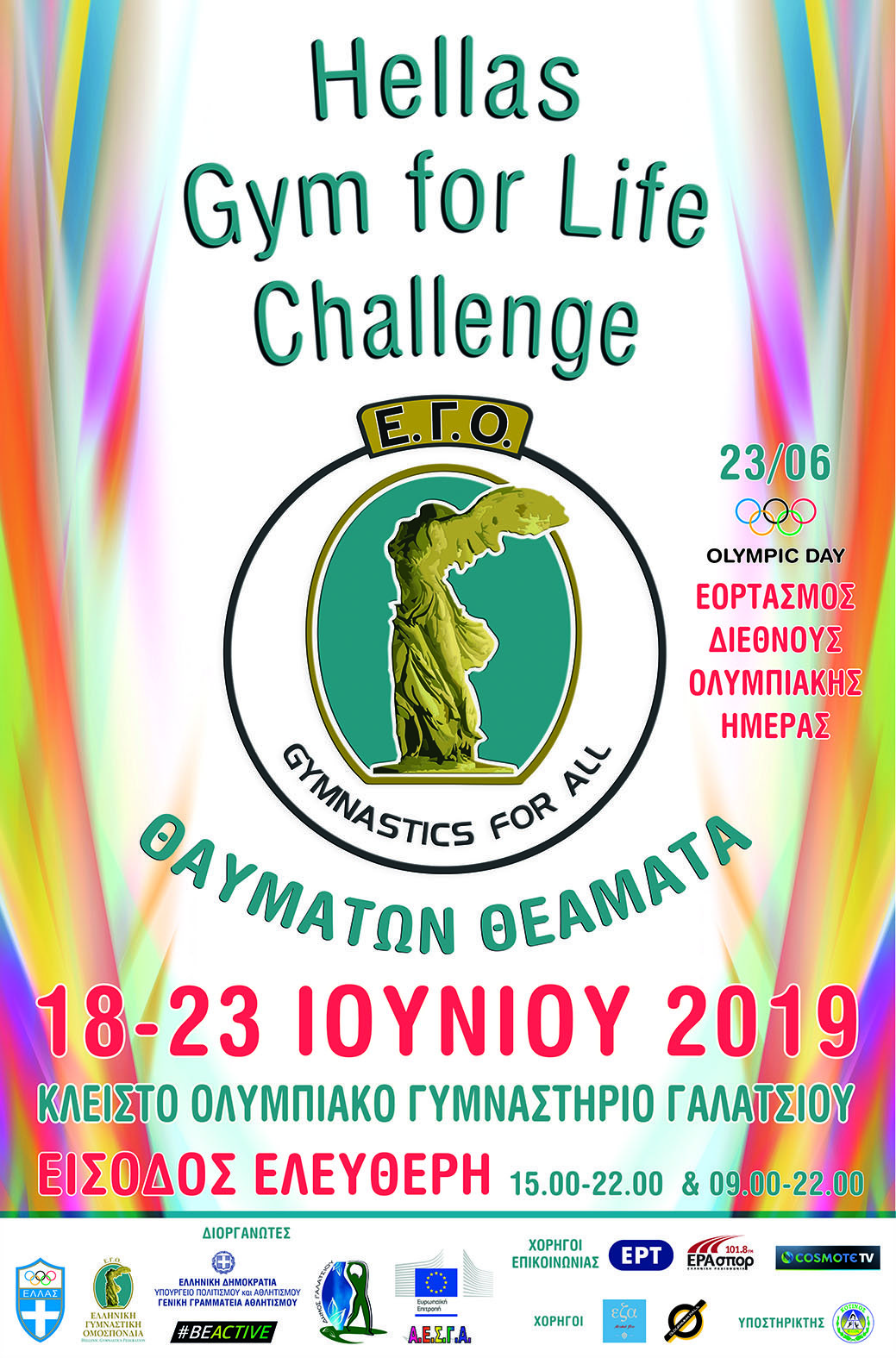 To “Hellas Gym for Life Challenge & EGO Astro Gym Festival 2019” διοργανώνεται από την Ελληνική Γυμναστική Ομοσπονδία, σε συνεργασία με τη Γενική Γραμματεία Αθλητισμού, την Ελληνική Ολυμπιακή Επιτροπή και τον Δήμο Γαλατσίου.